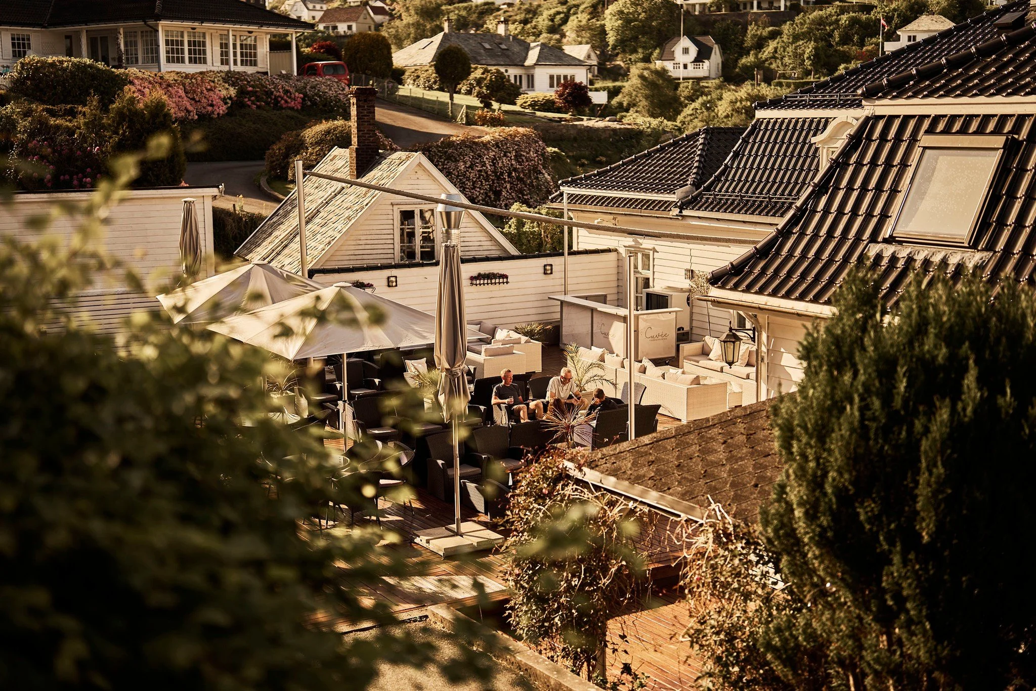 Vi skal ha Humanetisk vielse i hotellet sin nydelige rosehage om været tillater det. Om vi får litt rufsete vestlandsvær vil vielsen finne sted i Hengjo.